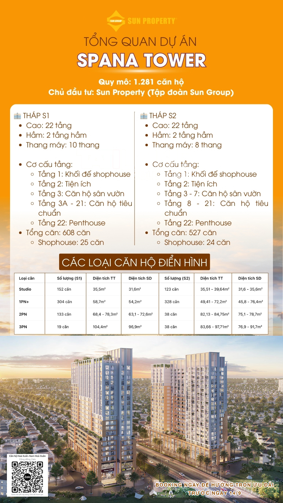 - Sun Group công bố phối cảnh dự án Spana Tower Hoà Xuân với chiều cao 22 tầng,