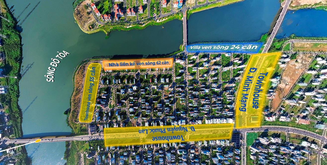 - View trực diện sông và nhìn vào khu biệt thự đẳng cấp bậc nhất Đà Nẵng Sunneva island